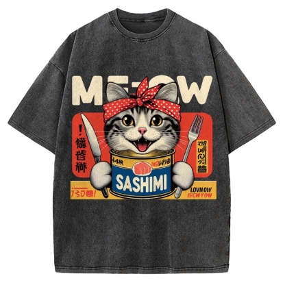 Meow Sashimi Cat Fish Salmon Vintage Washed T-shirt
