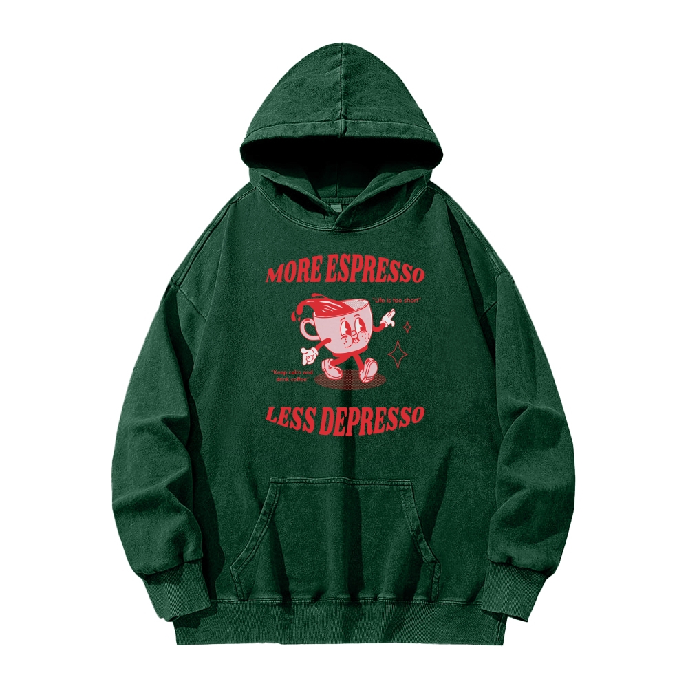 More Espresso Less Depresso Funny Coffee Vintage Washed Hoodie