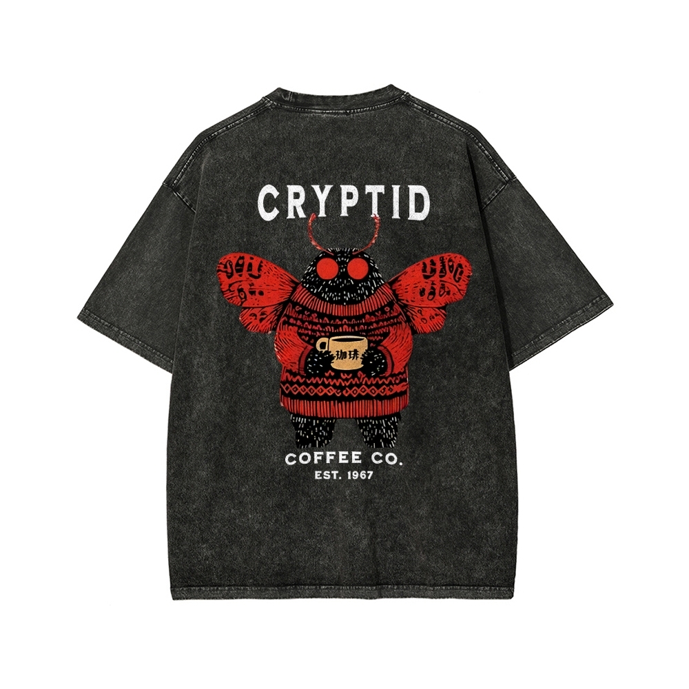 Mothman Coffee Front And Back Printing Washed T-shirt