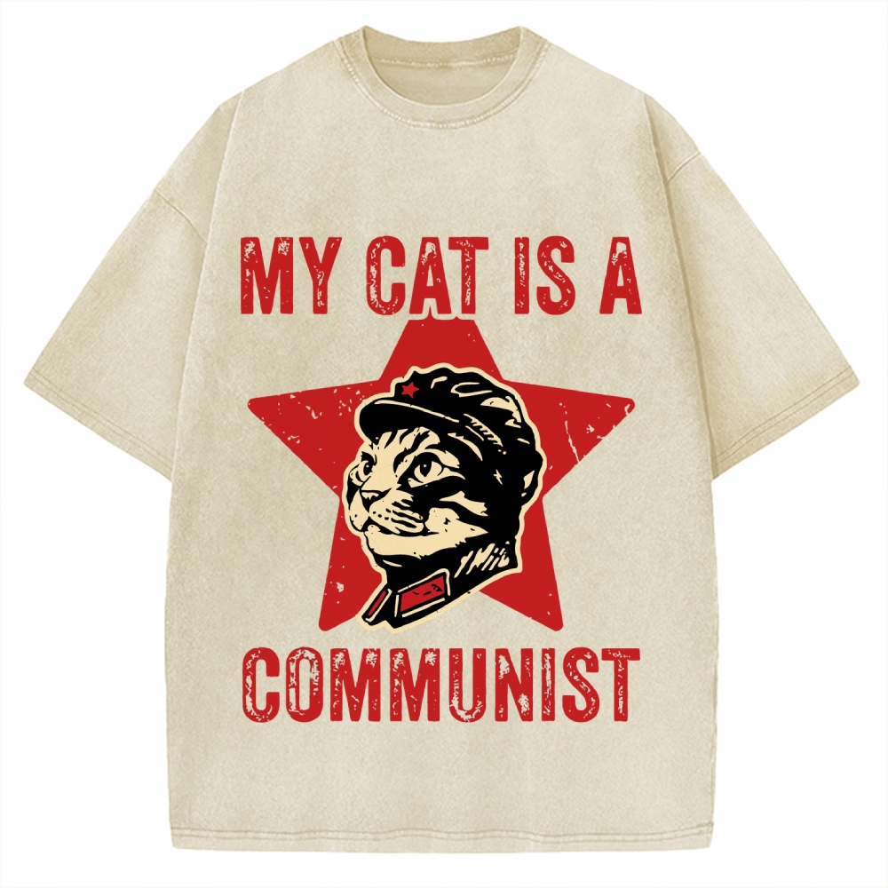 My Cat Is A Communist Vintage Funny Cat Lover Vintage Washed T-shirt
