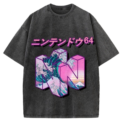 N64 Japanese Wave Entertainment System Vintage Washed T-shirt