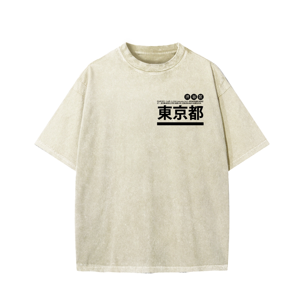 Night in Tokyo Street Front And Back Printing Washed T-shirt