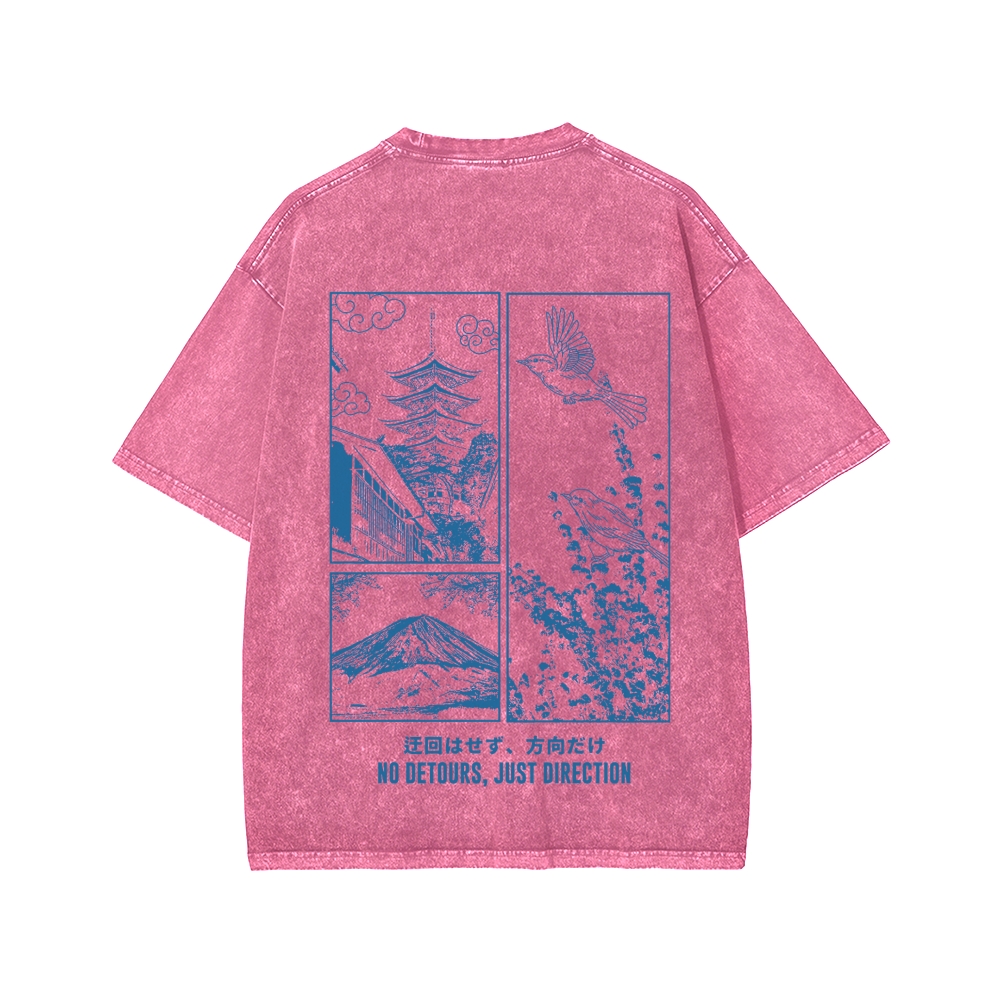 NO DETOURS JUST DIRECTION Japanese View Front And Back Printing Washed T-shirt