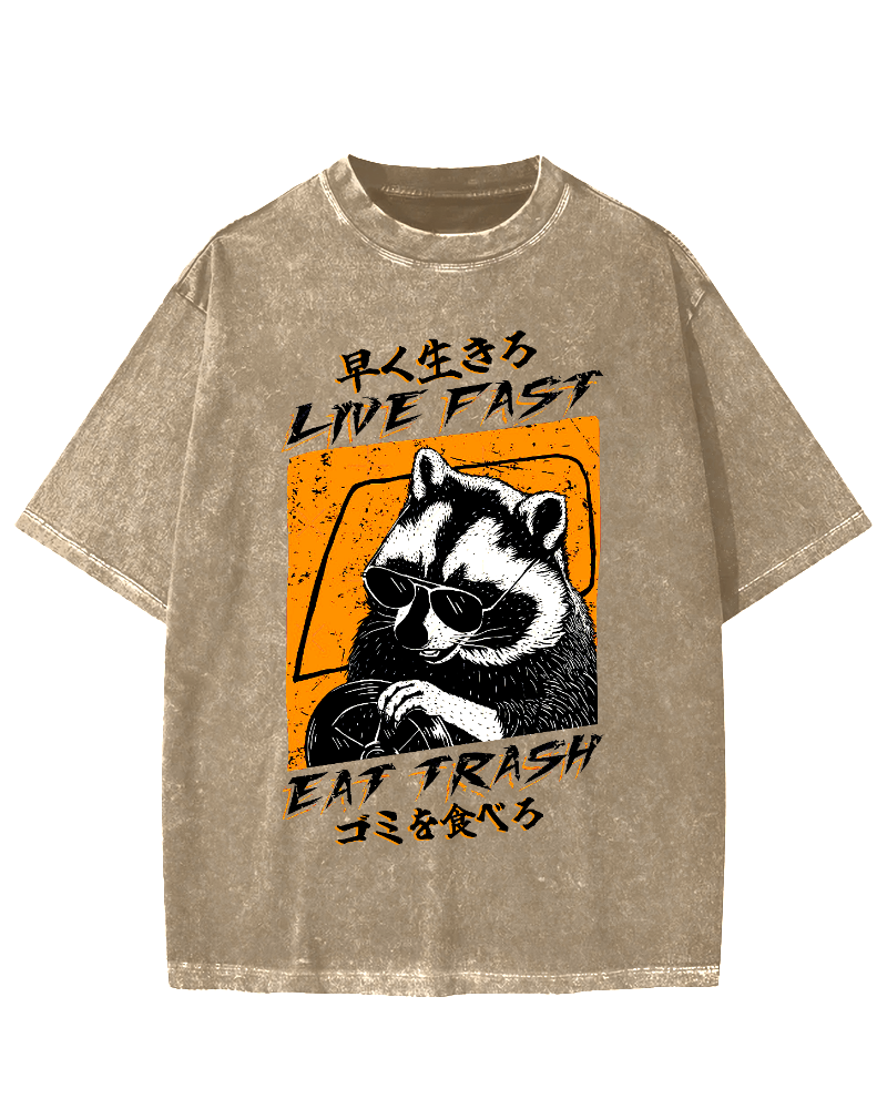 Raccoon Live Fast Eat Trash Vintage Washed T-shirt