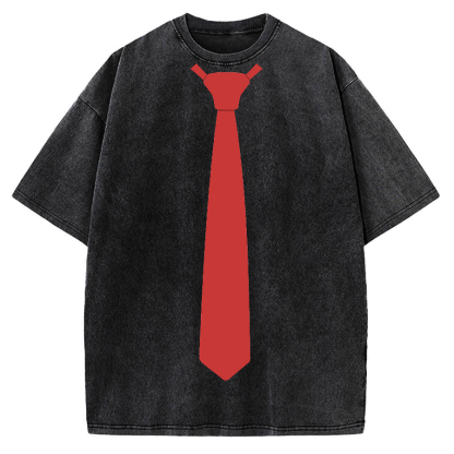 Red Tie Japanese salaryman cosplay Vintage Washed T-shirt