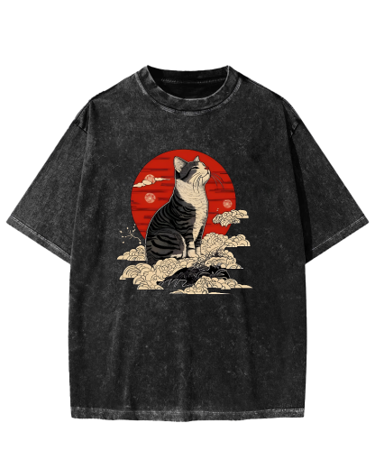 Retro Cat Japanese Art Vintage Washed T-shirt