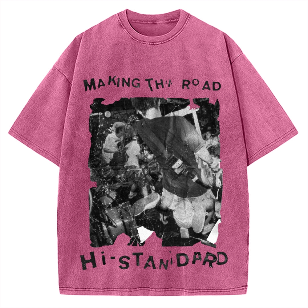 Retro style patchwork poster Rock Band Vintage Washed T-shirt