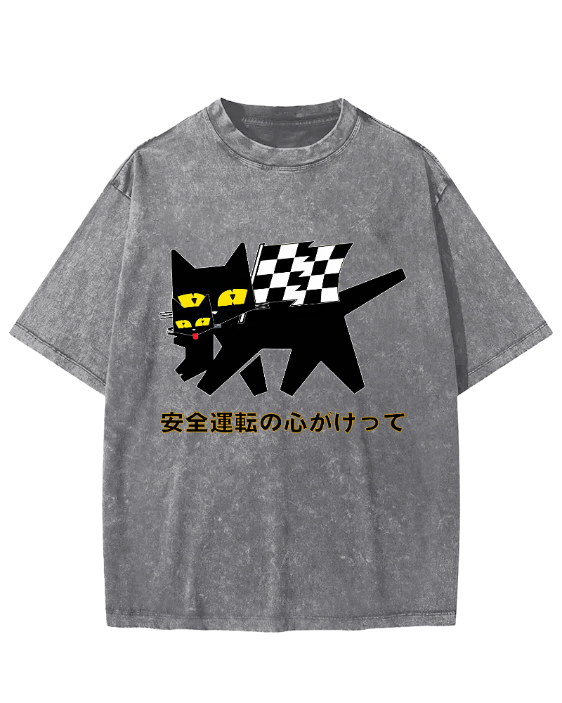 Safe Operation Japanese Style Vintage Washed T-shirt