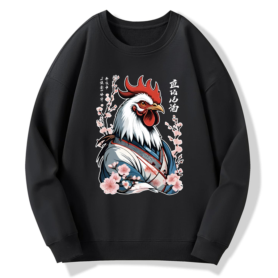 Samurai image retro rooster Cotton Pullover Sweatshirt