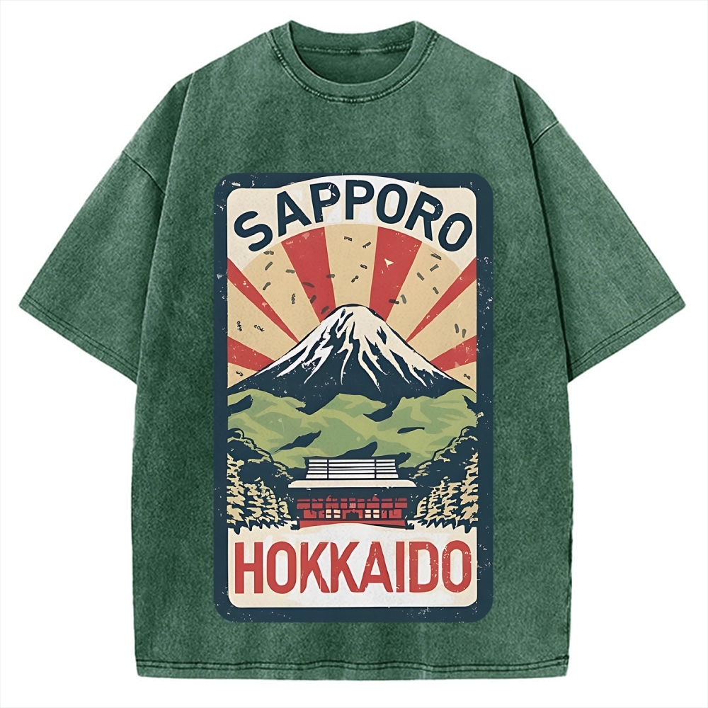 Sapporo Japanese Traditional Retro Poster Style Vintage Washed T-shirt