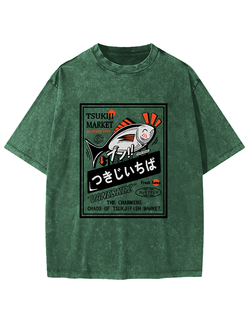 Small Fish Pattern Japanese Style Vintage Distressed T-shirt