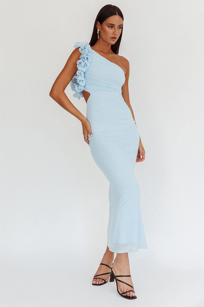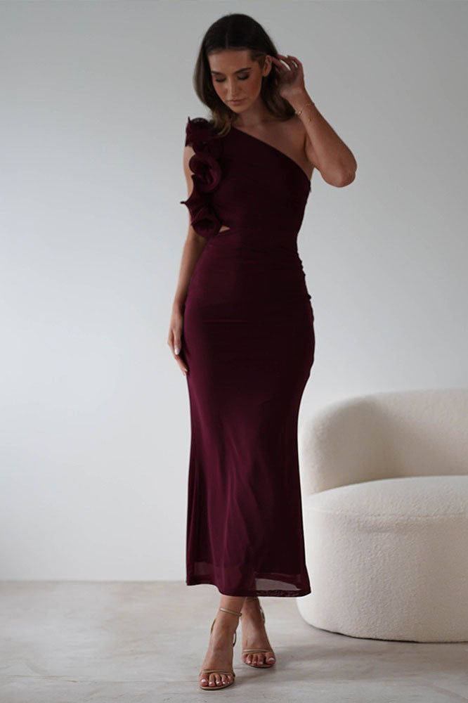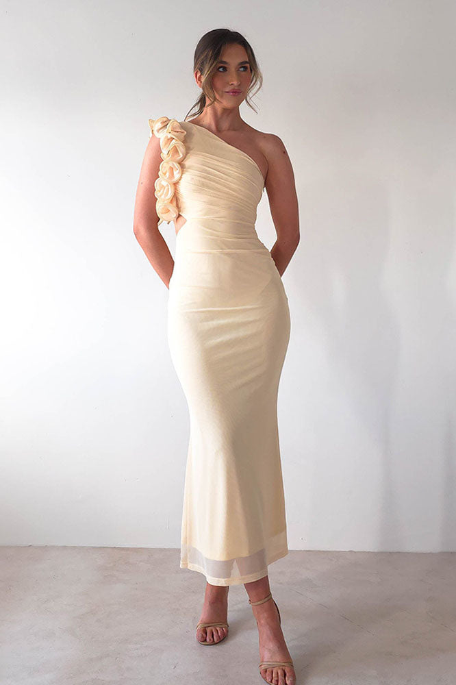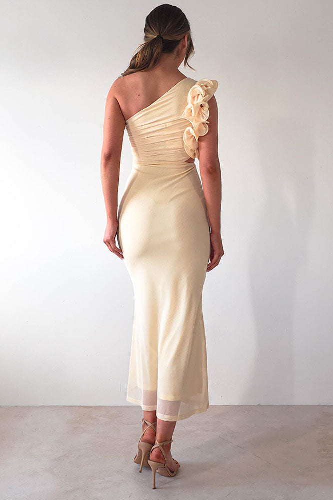 Statement Floral One-Shoulder Fitted Midi Dress
