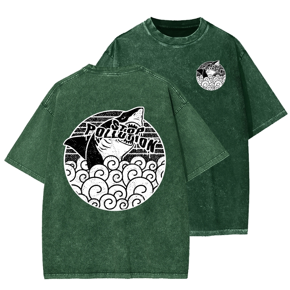 Stop pollution Front And Back Printing Washed T-shirt
