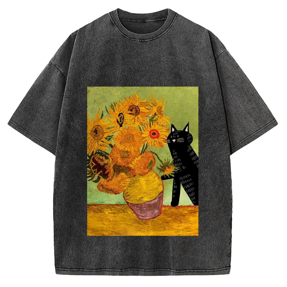 Sunflower Cat Vintage Washed T-shirt
