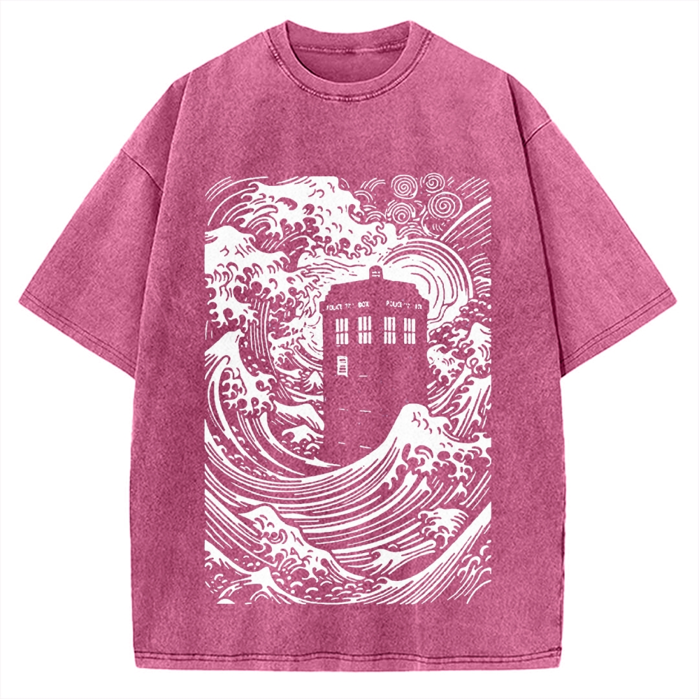 Telephone Booth In The Great Waves Vintage Washed T-shirt