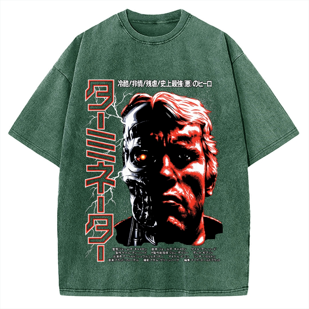 TTターミネーター Classic Movie Robot Vintage Washed T-shirt