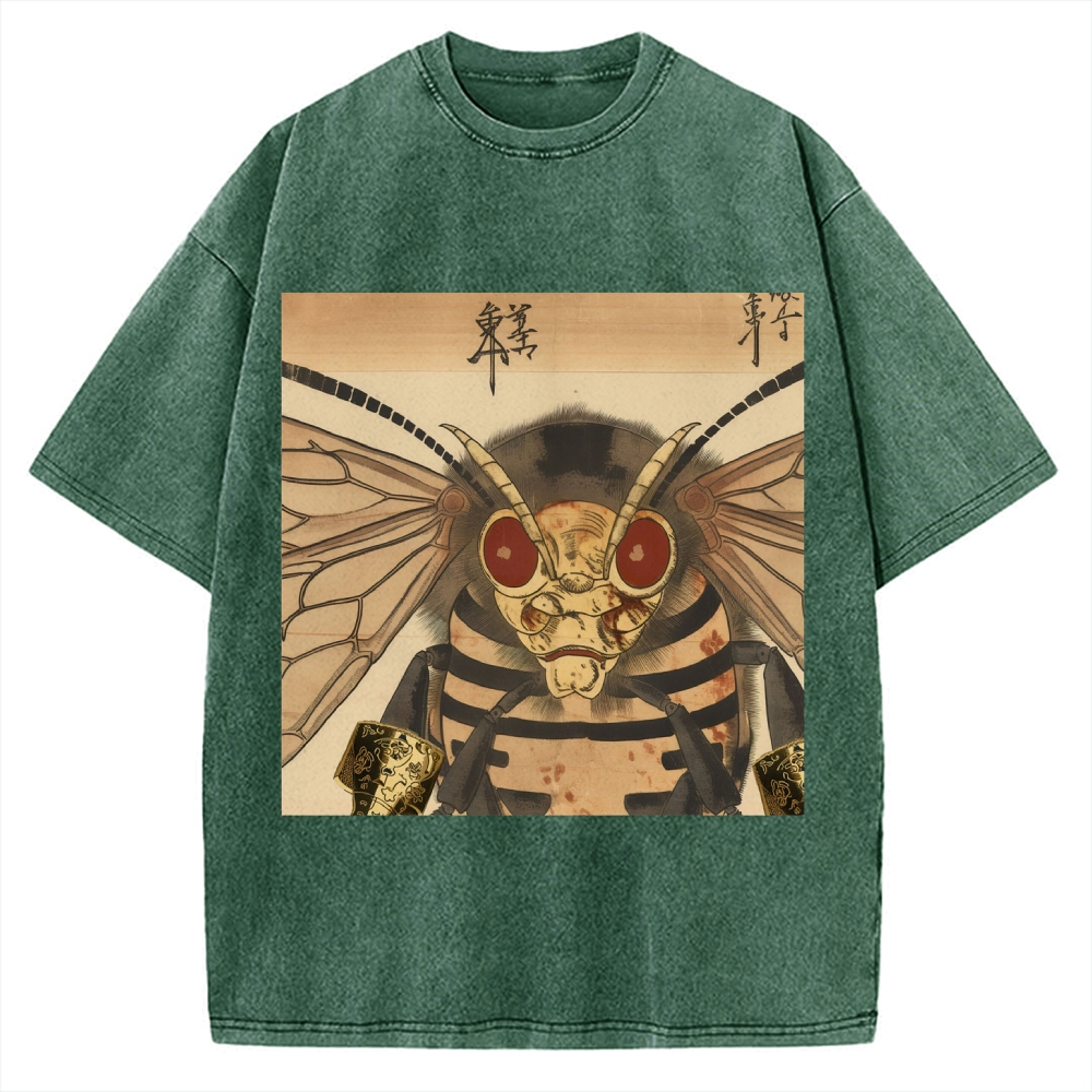 Ukiyo- E Style rhubarb bee Vintage Washed T-shirt