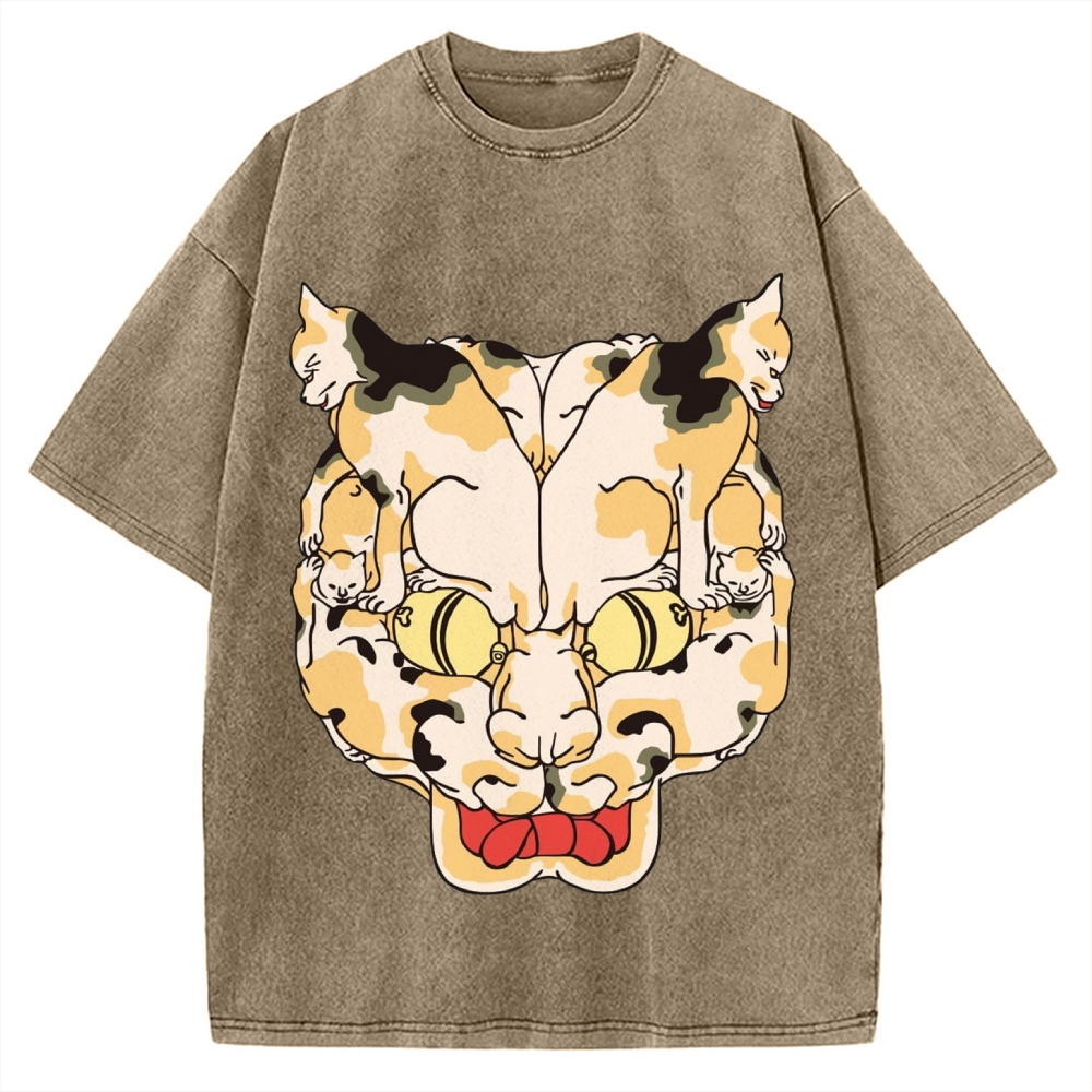 Ukiyo-e Style Cats Skull Vintage Washed T-shirt
