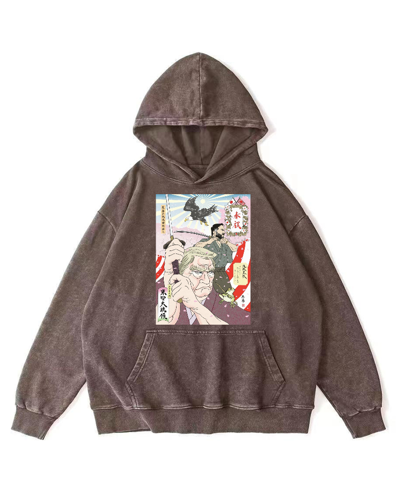Ukiyo-e American Samurai presidentVintage Washed Hoodie