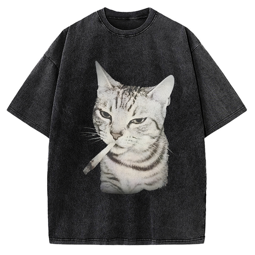 Vintage Smoking Cat Meme Vintage Washed T-shirt