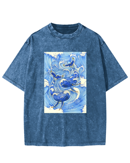 Whale Art in the Waves Vintage Washed T-shirt
