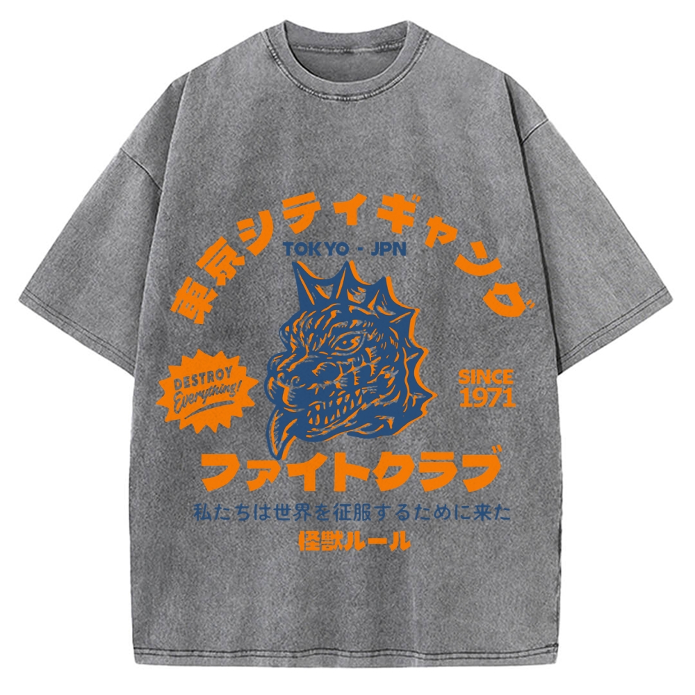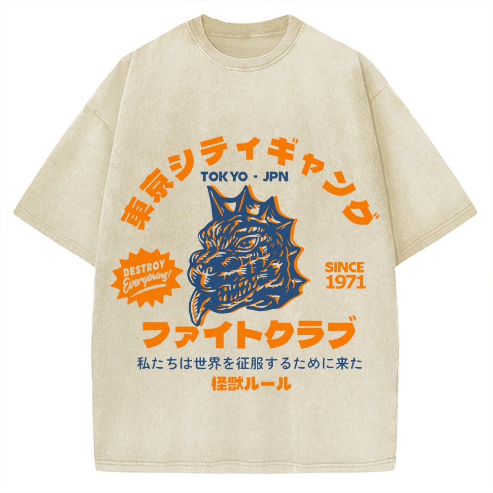 Yokai Monster Tokyo City Gang Fight Club Vintage Washed T-shirt