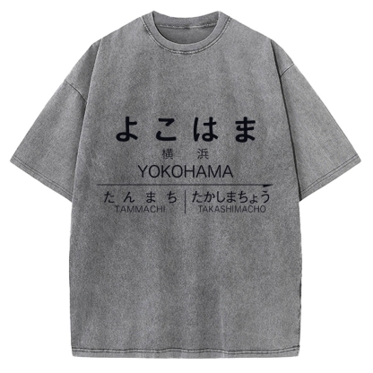 Yokohama ,Japan Train Station Vintage Washed T-shirt