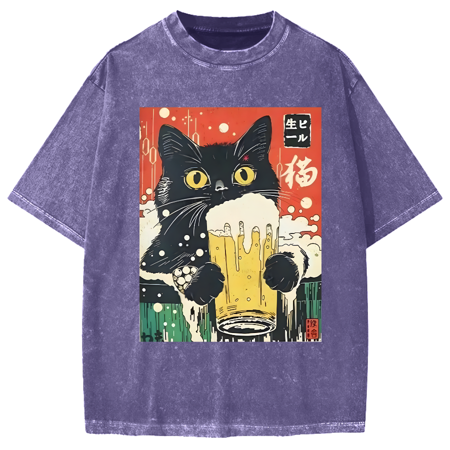 Cats Drink Beer Fun Vintage Washed T-shirt