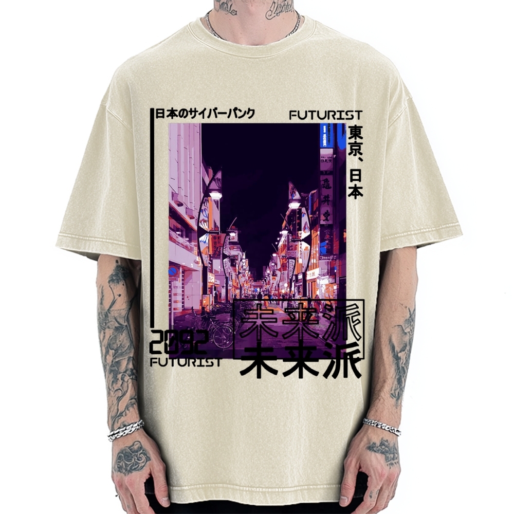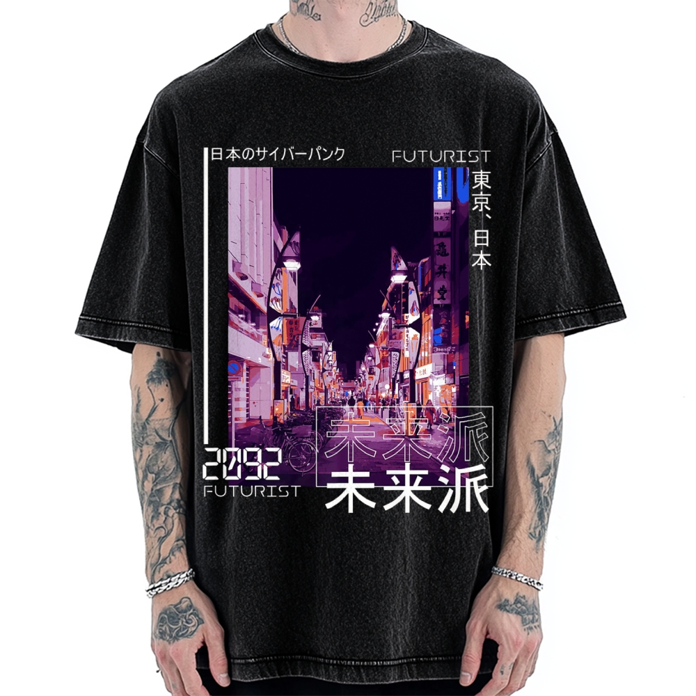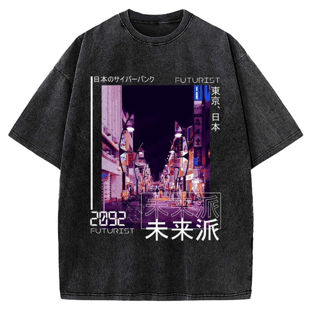 Japanese Cyberpunk Tokyo Vintage Washed T-shirt