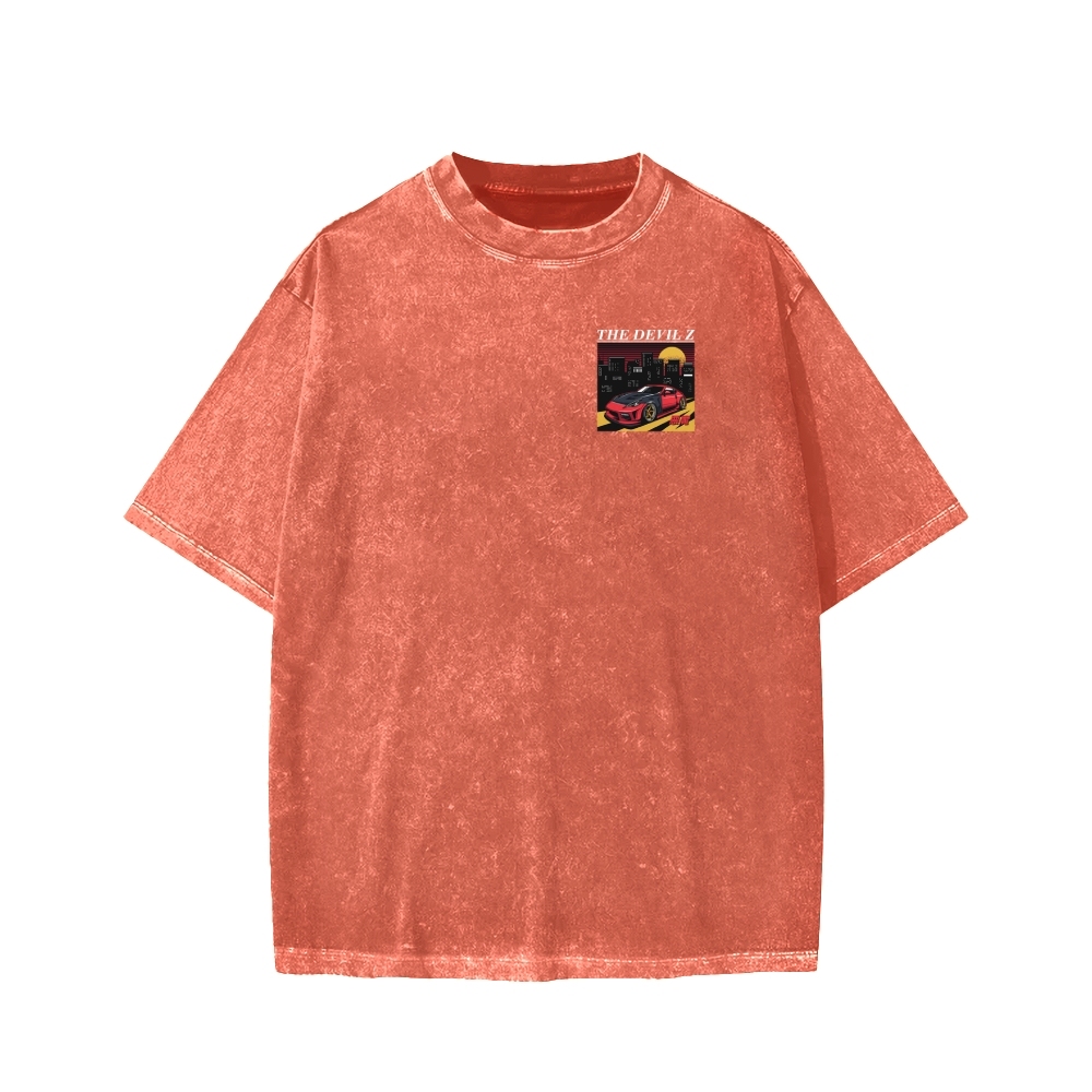 Japanese Racing Car The Devil Z Front And Back Printing Washed T-shirt