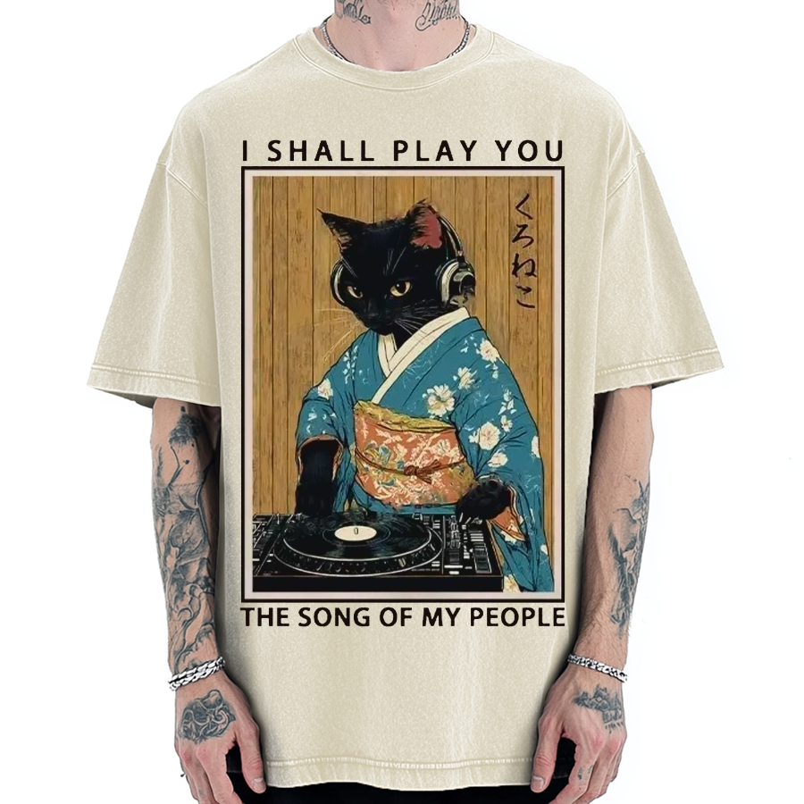 Kuroneko Geisha DJ Cat Vintage Washed T-shirt