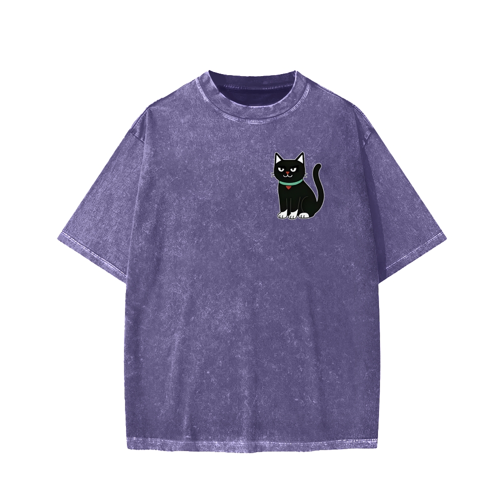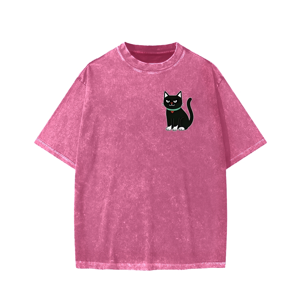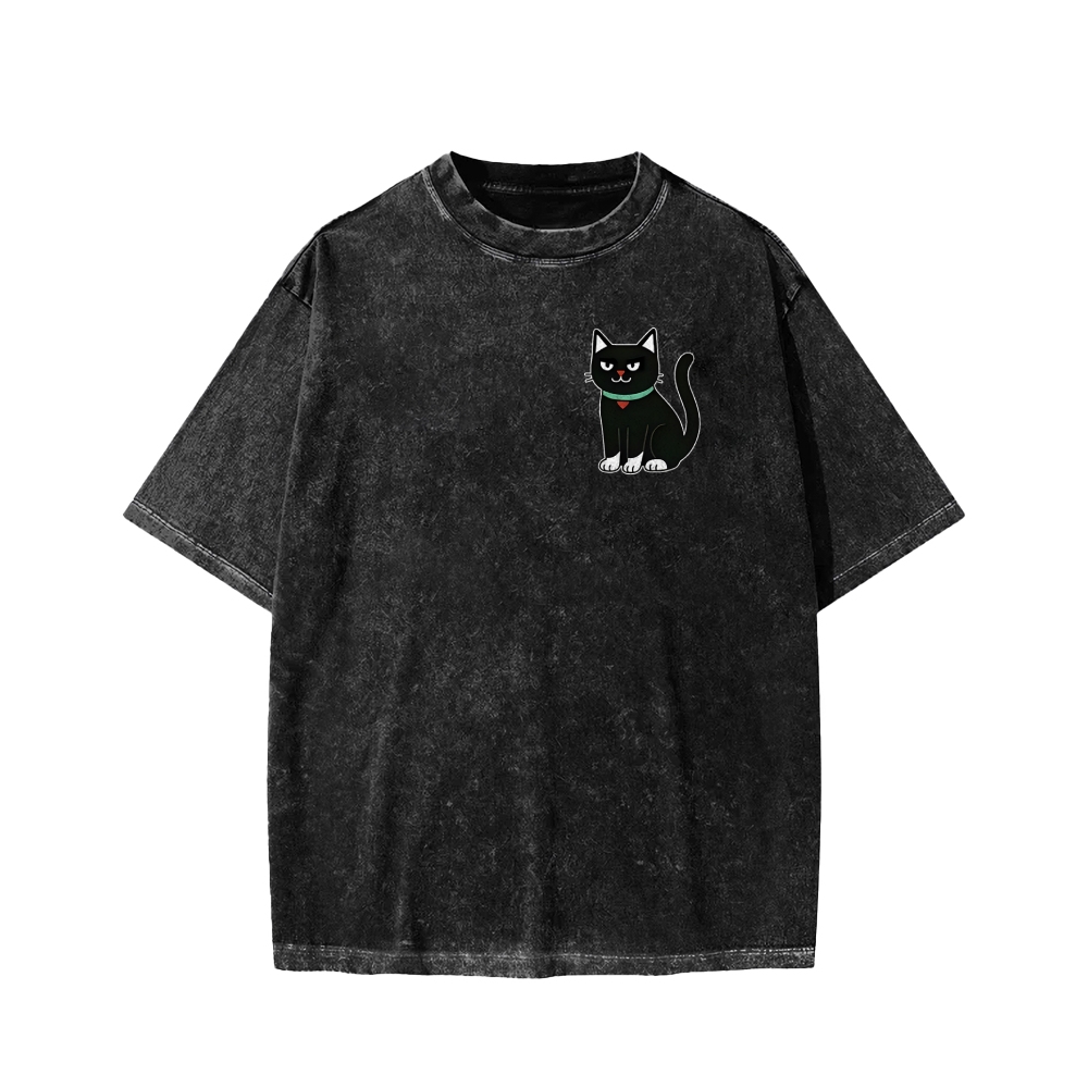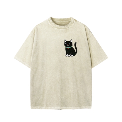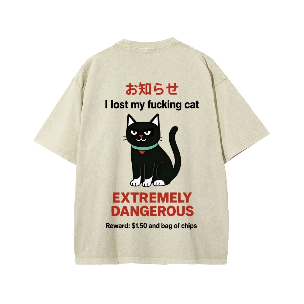 Look For Dangerous Cat Front And Back Printing Washed T-shirt