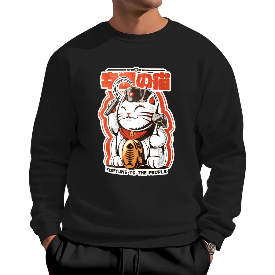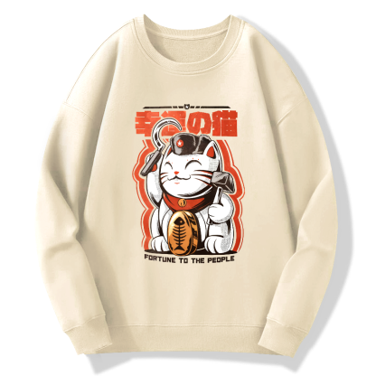 Lucky Cat Cotton Pullover Sweatshirt