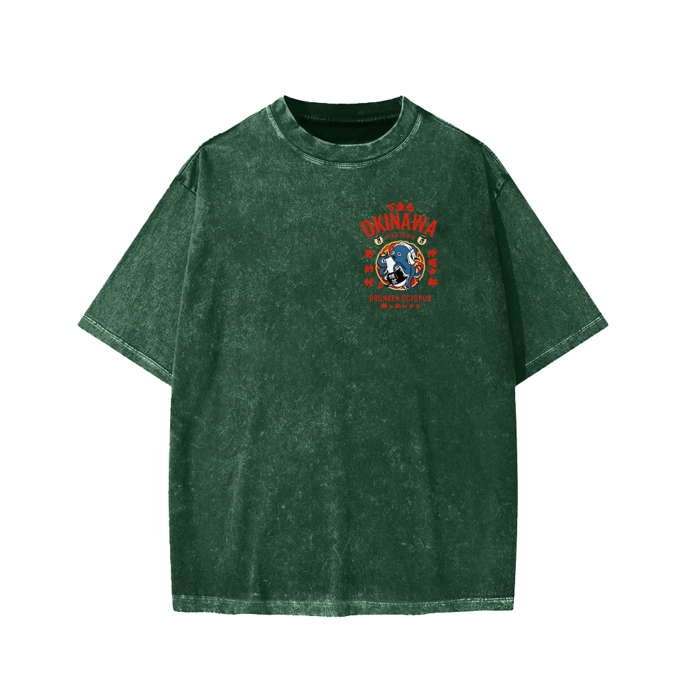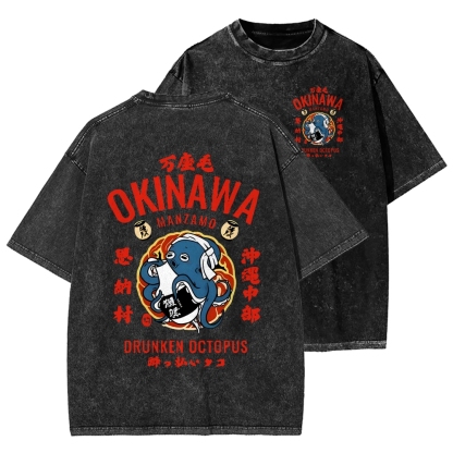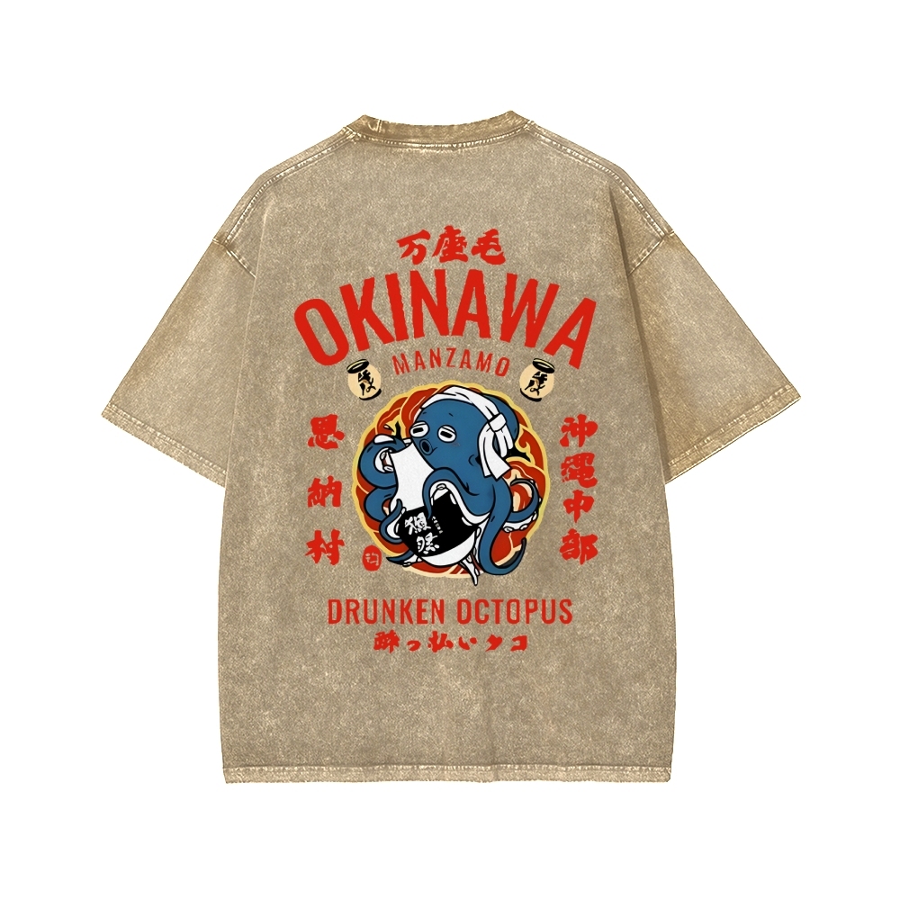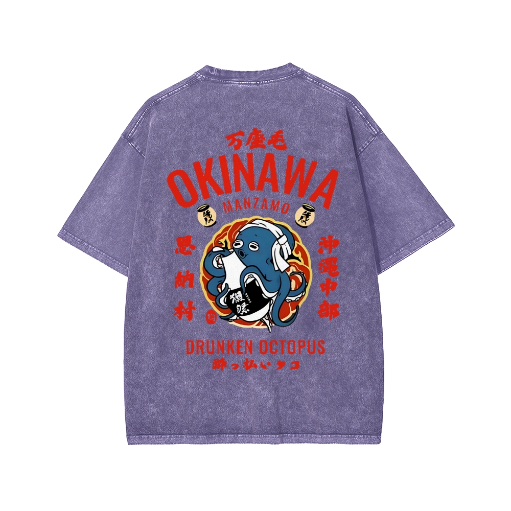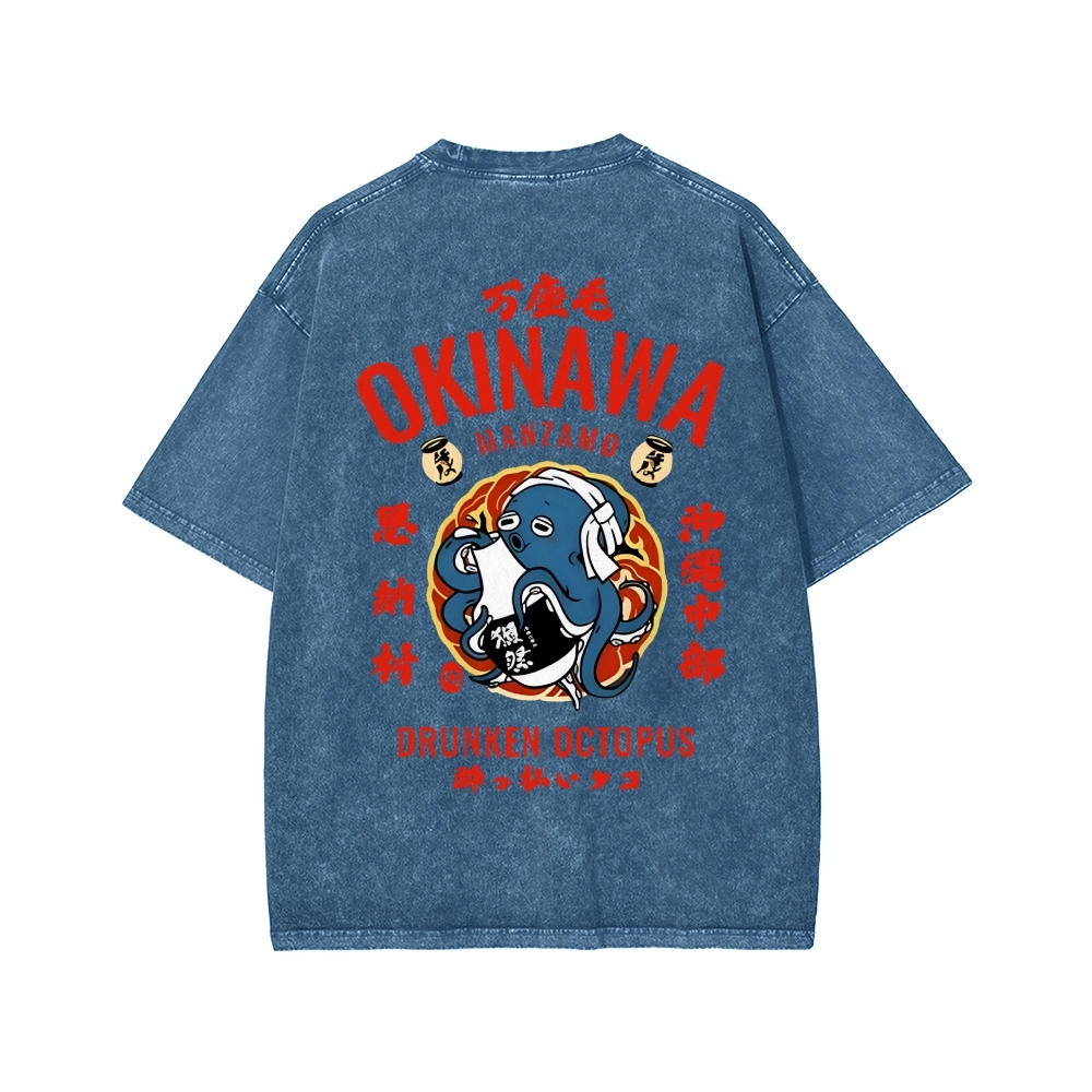 Okinawa Drunken Octopus Front And Back Printing Washed T-shirt