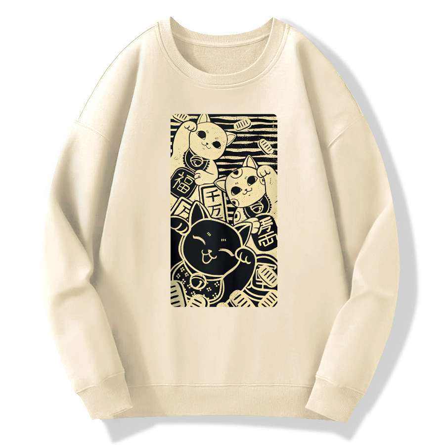 Lucky Cat Japanese Style Cotton Pullover Sweatshirt
