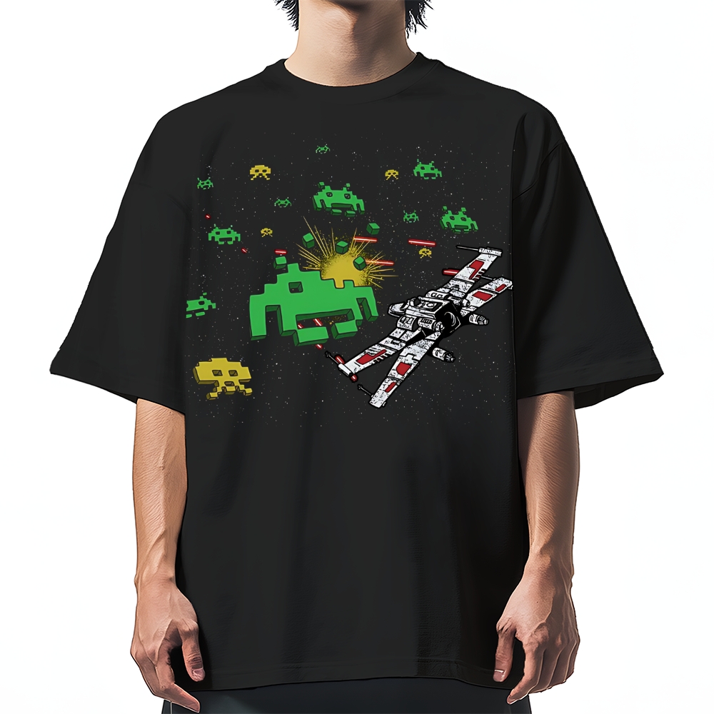 Retro Mosaic Game Battle Starship Cotton casual T-shirt
