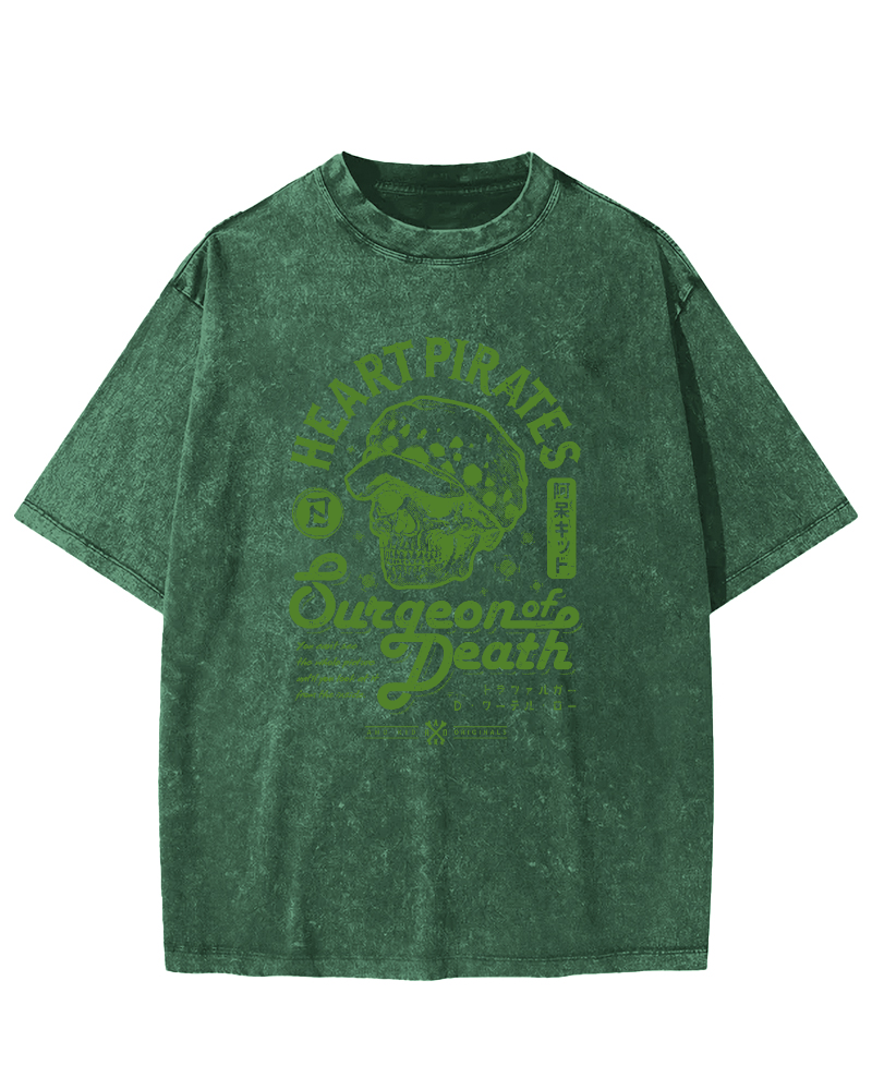 Skull pattern retro Vintage Washed T-shirt