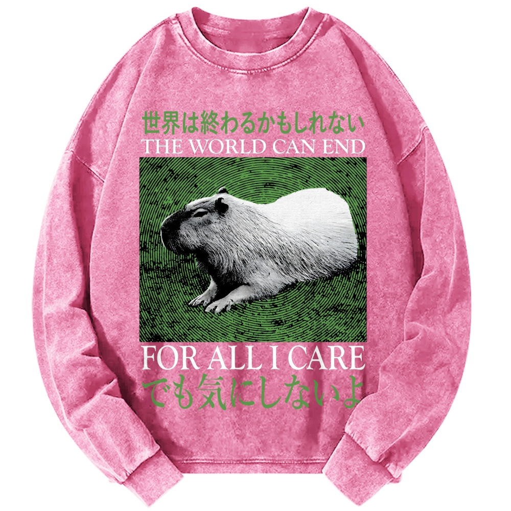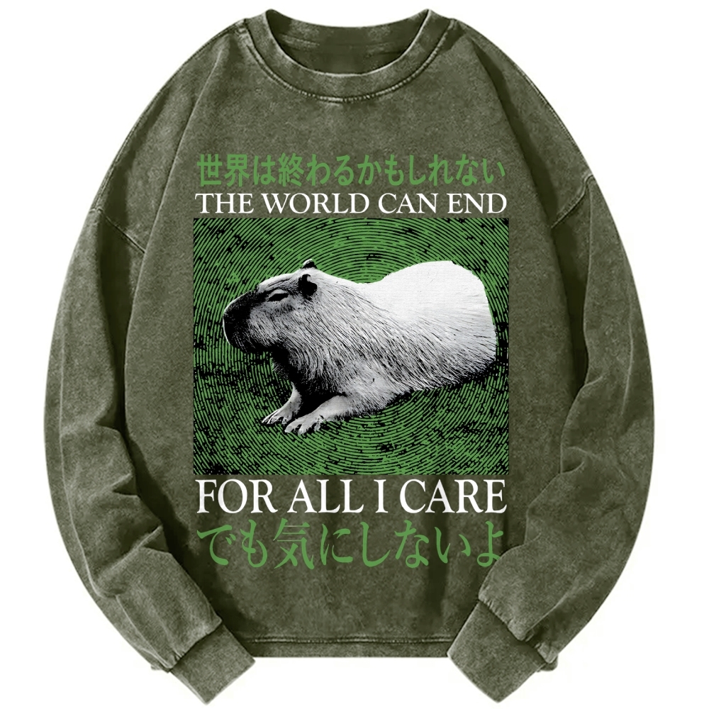 The World Can End Capybara Vintage Washed Sweatshirts